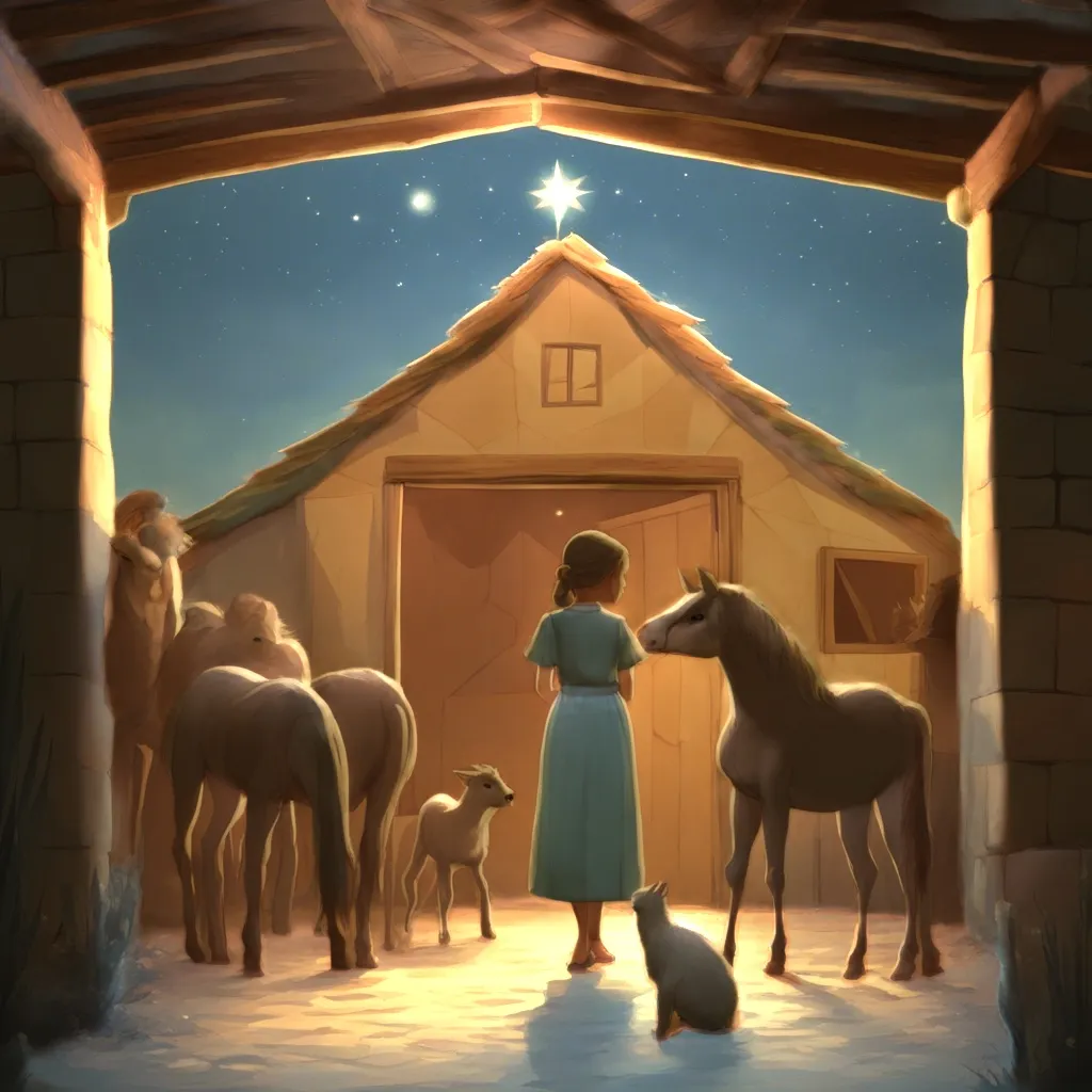 【 OO 】이는 조심스럽게 마굿간으로 들어갔어요. 그곳에서 본 것은 세상에서 가장 아름다운 장면이었어요. 마굿간 안에는 마리아가 아기를 안고 있었어요. 그 아기는 바로 예수님이었어요. 그리고 그 곁에는 요셉이 있었어요. 요셉은 마리아와 아기 예수님을 사랑의 눈길로 바라보고 있었어요.