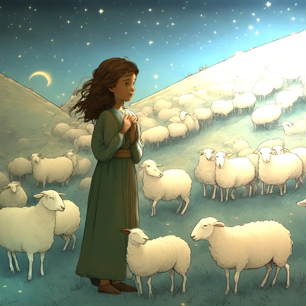 옛날 옛날 매우 추운 겨울밤이었어요. 작은 목동 【 OO 】이는 자신의 양떼를 돌보며 별이 가득한 밤하늘을 바라보고 있었어요. 【 OO 】이는 언제나 그랬듯이 양들이 안전하게 잠들 수 있도록 지켜주고 있었지요.