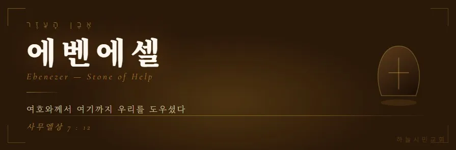 사무엘이 돌을 취하여 미스바와 센 사이에 세워 이르되 여호와께서 여기까지 우리를 도우셨다 하고 그 이름을 에벤에셀이라 하니라