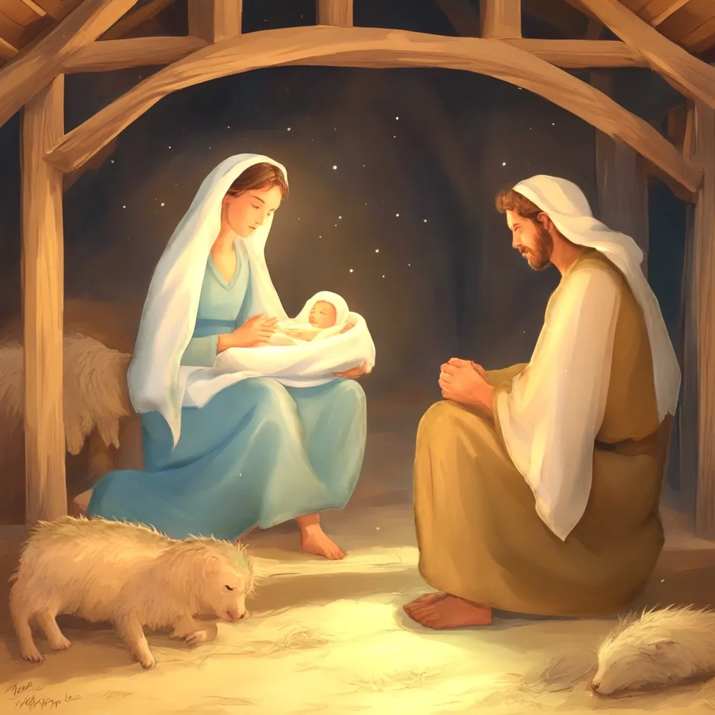 【 OO 】는 조심스럽게 마굿간으로 들어갔어요. 그곳에서 본 것은 세상에서 가장 아름다운 장면이었어요. 마굿간 안에는 마리아가 아기를 안고 있었어요. 그 아기는 바로 예수님이었어요. 그리고 그 곁에는 요셉이 있었어요. 요셉은 마리아와 아기 예수님을 사랑의 눈길로 바라보고 있었어요.