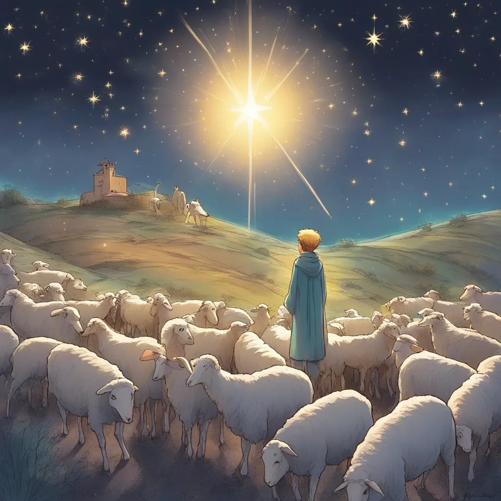 옛날 옛날 매우 추운 겨울밤이었어요. 작은 목동 【 OO 】는 자신의 양떼를 돌보며 별이 가득한 밤하늘을 바라보고 있었어요. 【 OO 】는 언제나 그랬듯이 양들이 안전하게 잠들 수 있도록 지켜주고 있었지요.